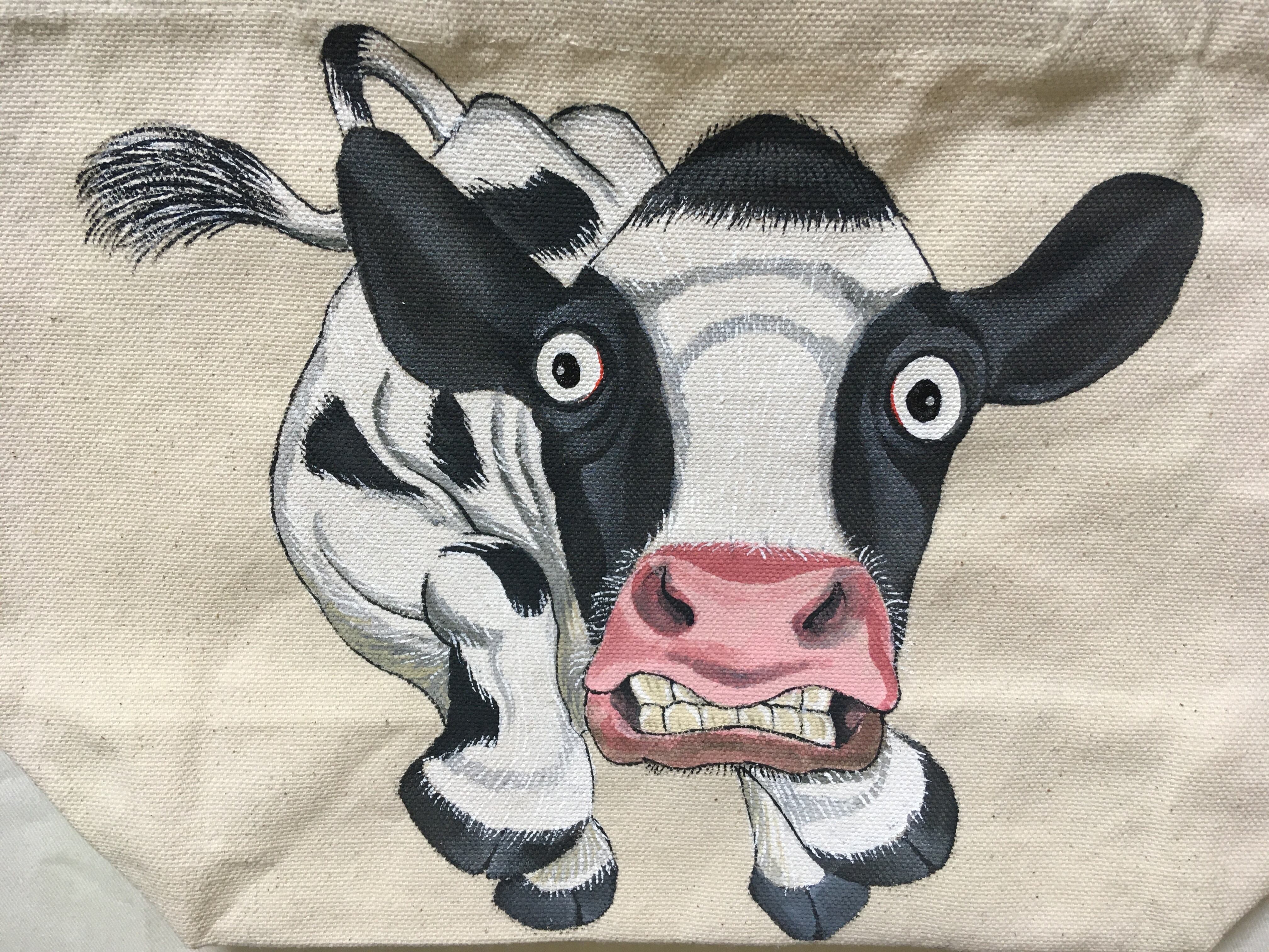 #牛 #トートバッグ #バック #ランチ #手書き #ハンドメイド #GirassolArtGallery