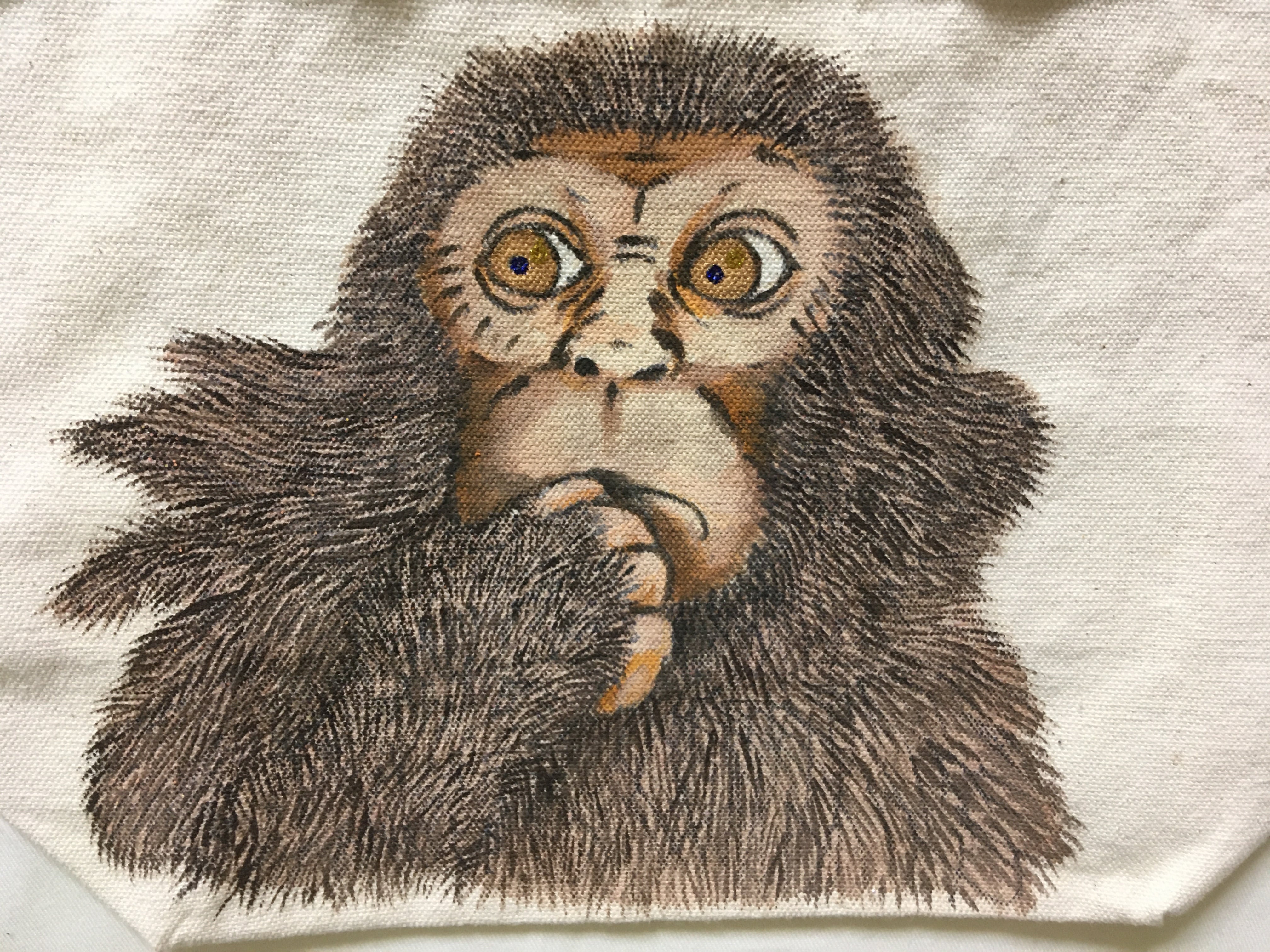 #猿 #トートバッグ #バック #ランチ #手書き #ハンドメイド #GirassolArtGallery